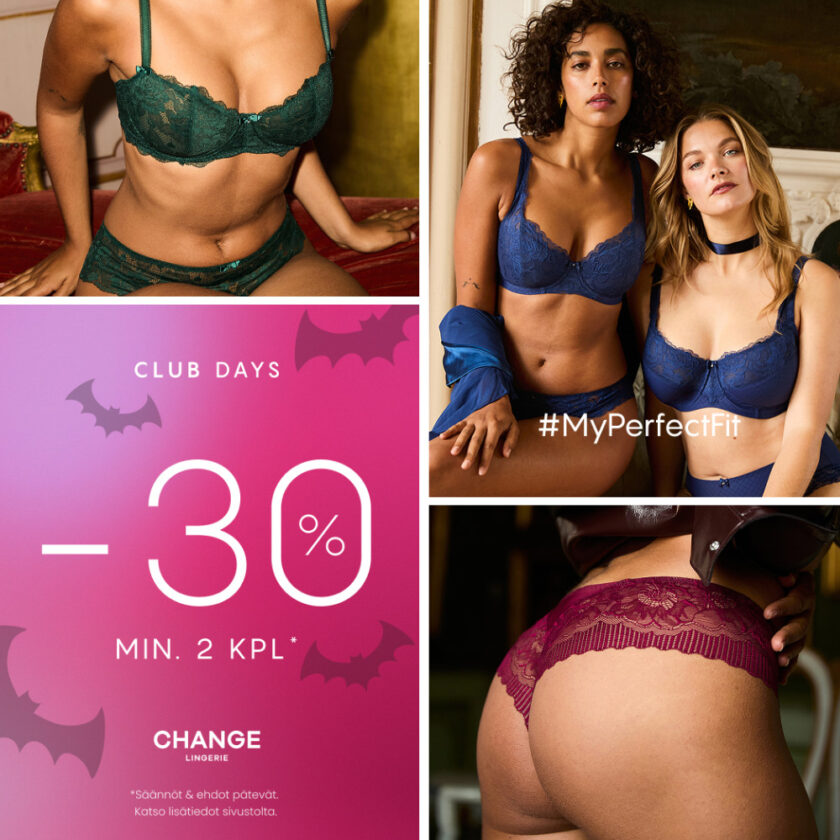 Tarjous Club CHANGE jäsenille. Ei koske sukkia, sukkahousuja, mypanties, myessentials eikä valittuja acessories tuotteita.