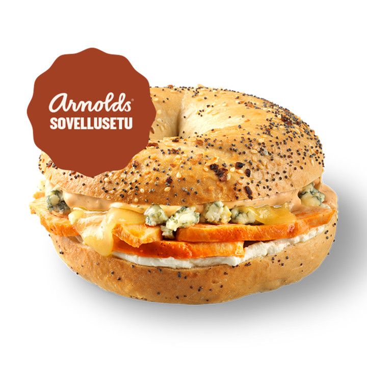 Marraskuun Arnolds-sovellusetuna Buffalo Chicken Melt Bagel 7,10 € (norm. 9,40 €). Tervetuloa herkuttelemaan!