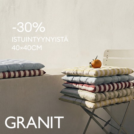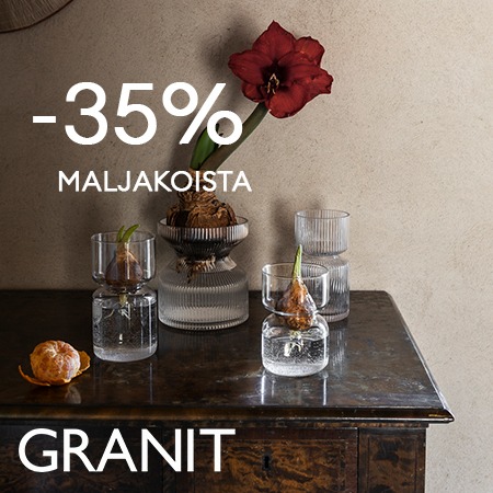30 vuoden aikana olemme toki kehittyneet ja luoneet laajan tuotevalikoiman sekä kotiin että toimistoon, mutta Granit-malliston perusfilosofia on pysynyt samana. Kaiken perustana ovat inspiroivat ja kestävät ratkaisut, jotka helpottavat arkea ja jättävät enemmän aikaa elämälle. Mottomme on alusta alkaen ollut selkeä: Helpompaa elämää.